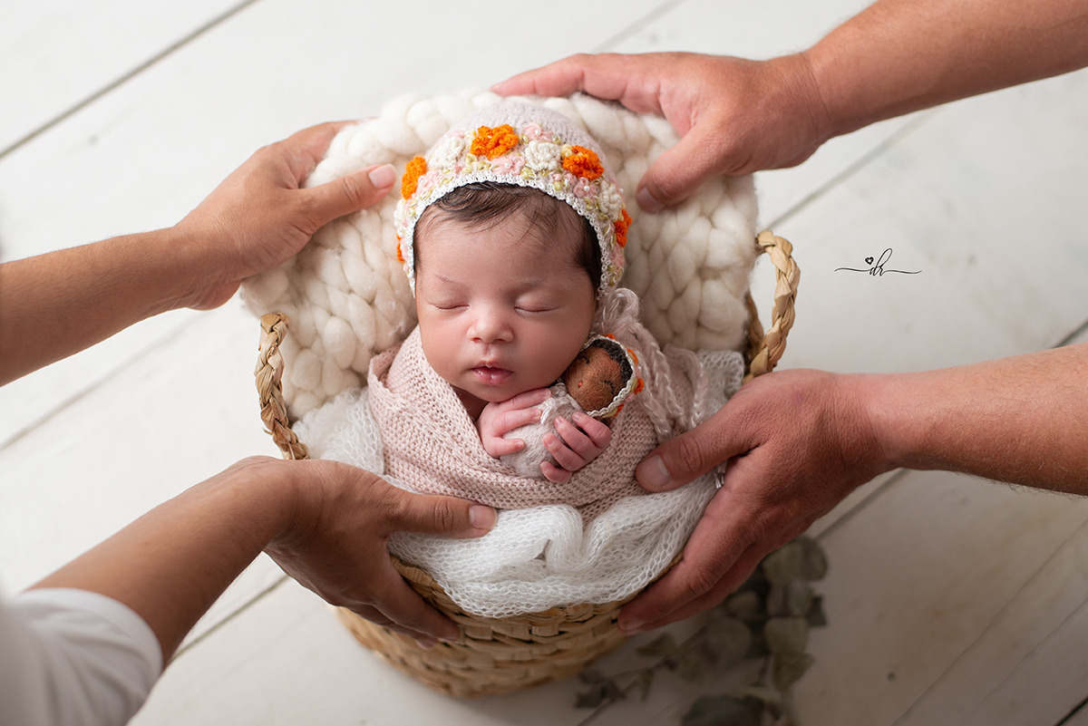O ensaio newborn é realizado preferencialmente dos 7 aos 15 dias de nascido, porque nos primeiros dias o bebê passa mais tempo em sono profundo, possui mais flexibilidade o que facilita o posicionamento, e geralmente não tem as temidas cólicas.
